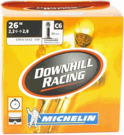 Before going into production, the Michelin DH Racing tube underwent several years of development in international downhill competition, ultimately winning the world championship. After withstanding the most demanding conditions in every corner of the globe, there was no doubt as to its strength. With a larger air volume and 33% greater wall thickness than a standard tube (1.2 mm versus 0.9 mm), there’s no substitute for a genuine Michelin DH Racing tube.