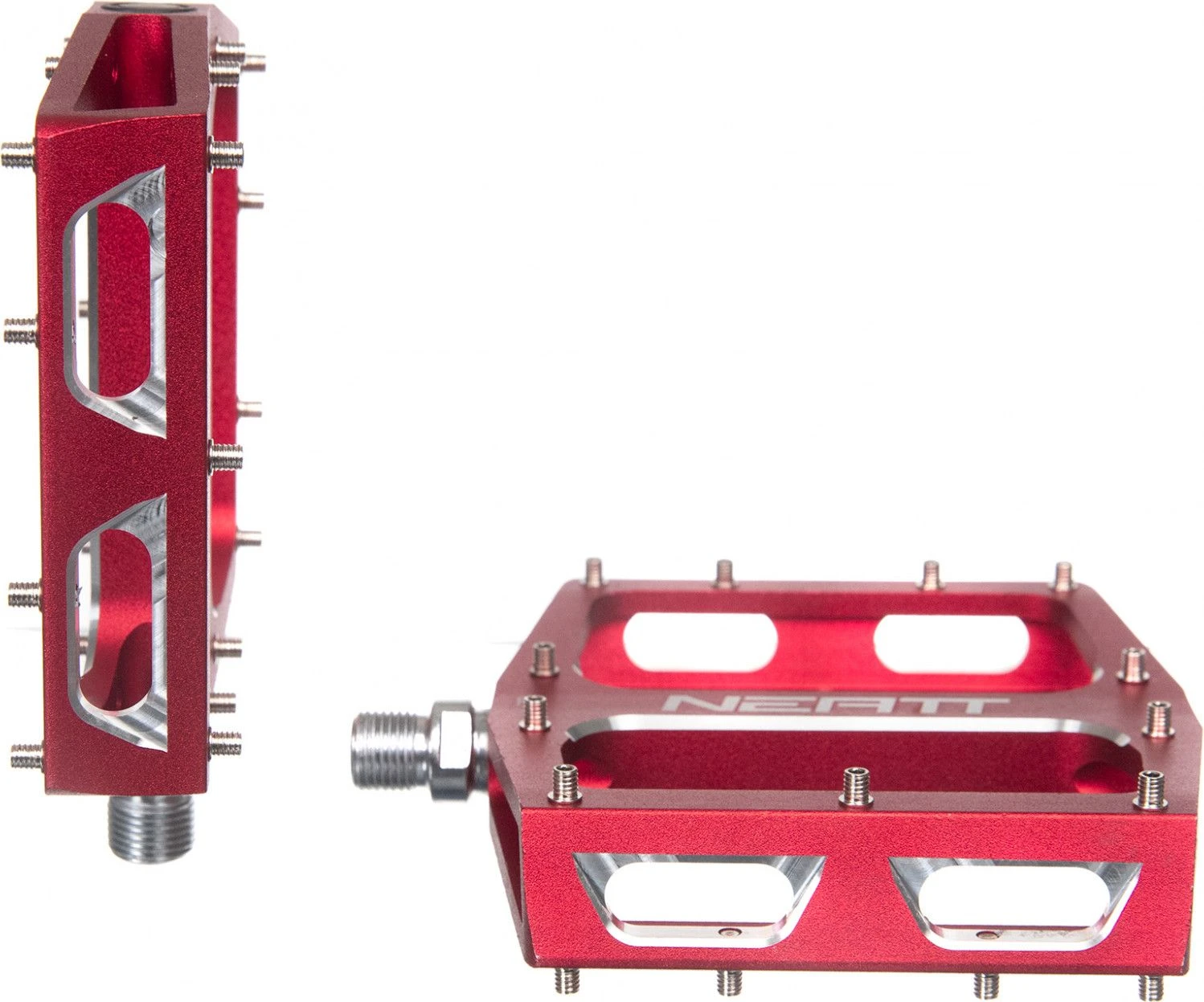 Wider than the standard version, the pair of Neatt Attack V2 XL flat pedals have a larger bearing surface. Its robust design makes it effective on any type of terrain.